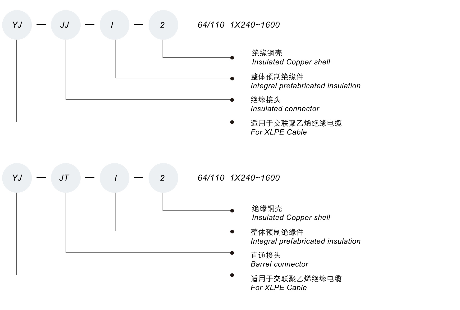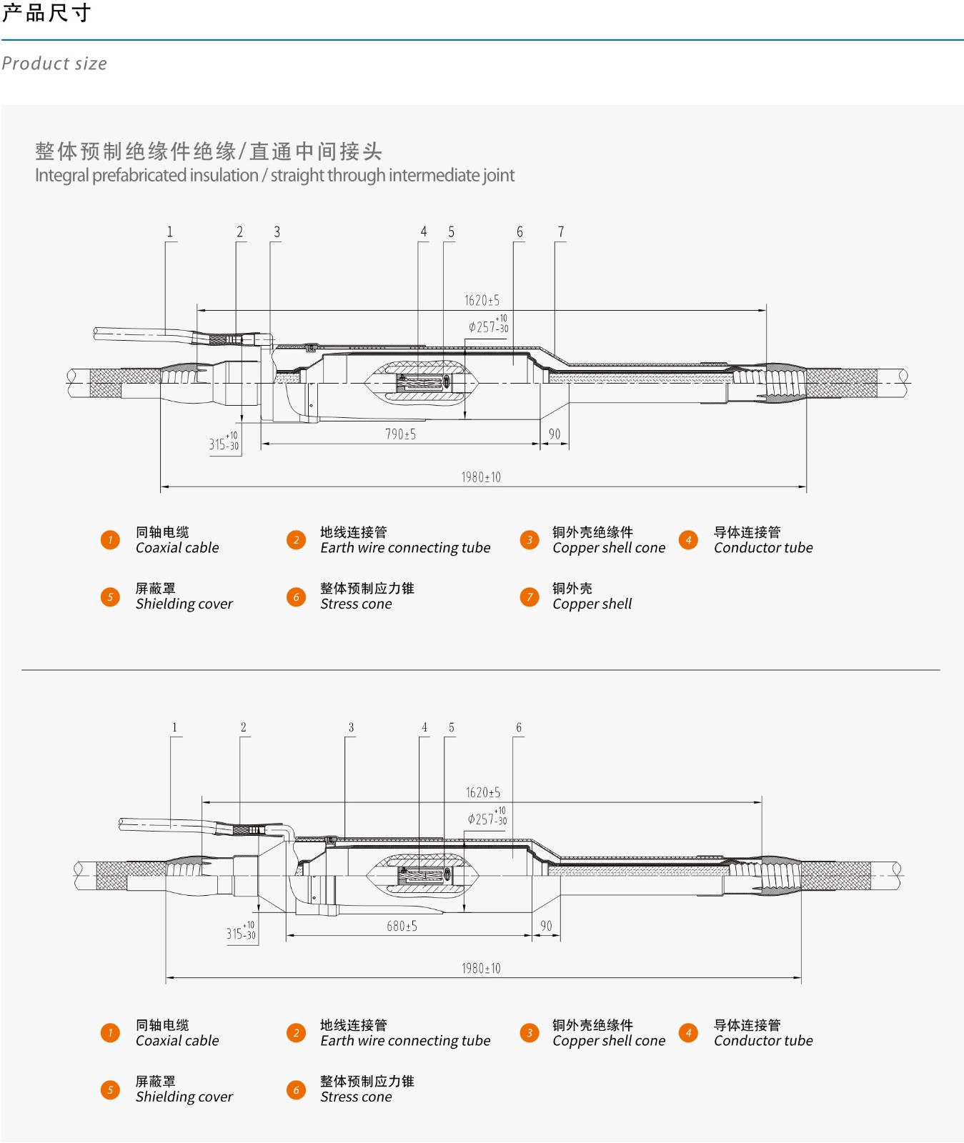 66-110KV整体预制绝缘件绝缘/直通中间接头